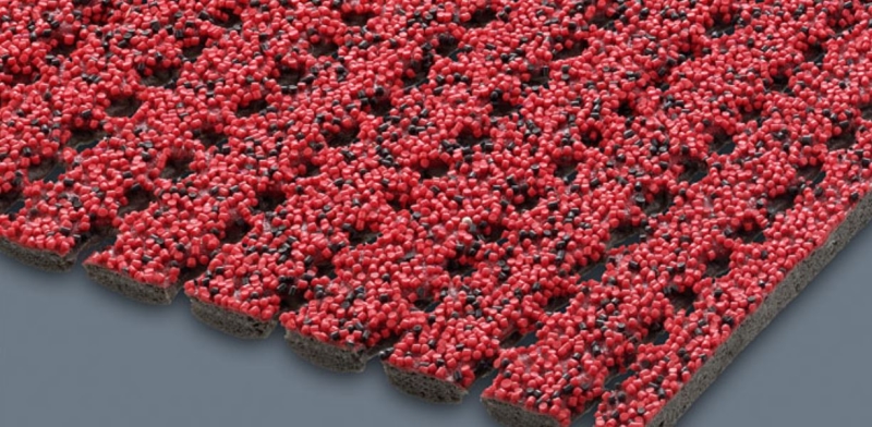 Materjal termoplastik/klaaskiud kaetud mõlemalt poolt erilise PVC vahuga, pinnal PVC graanulid.
